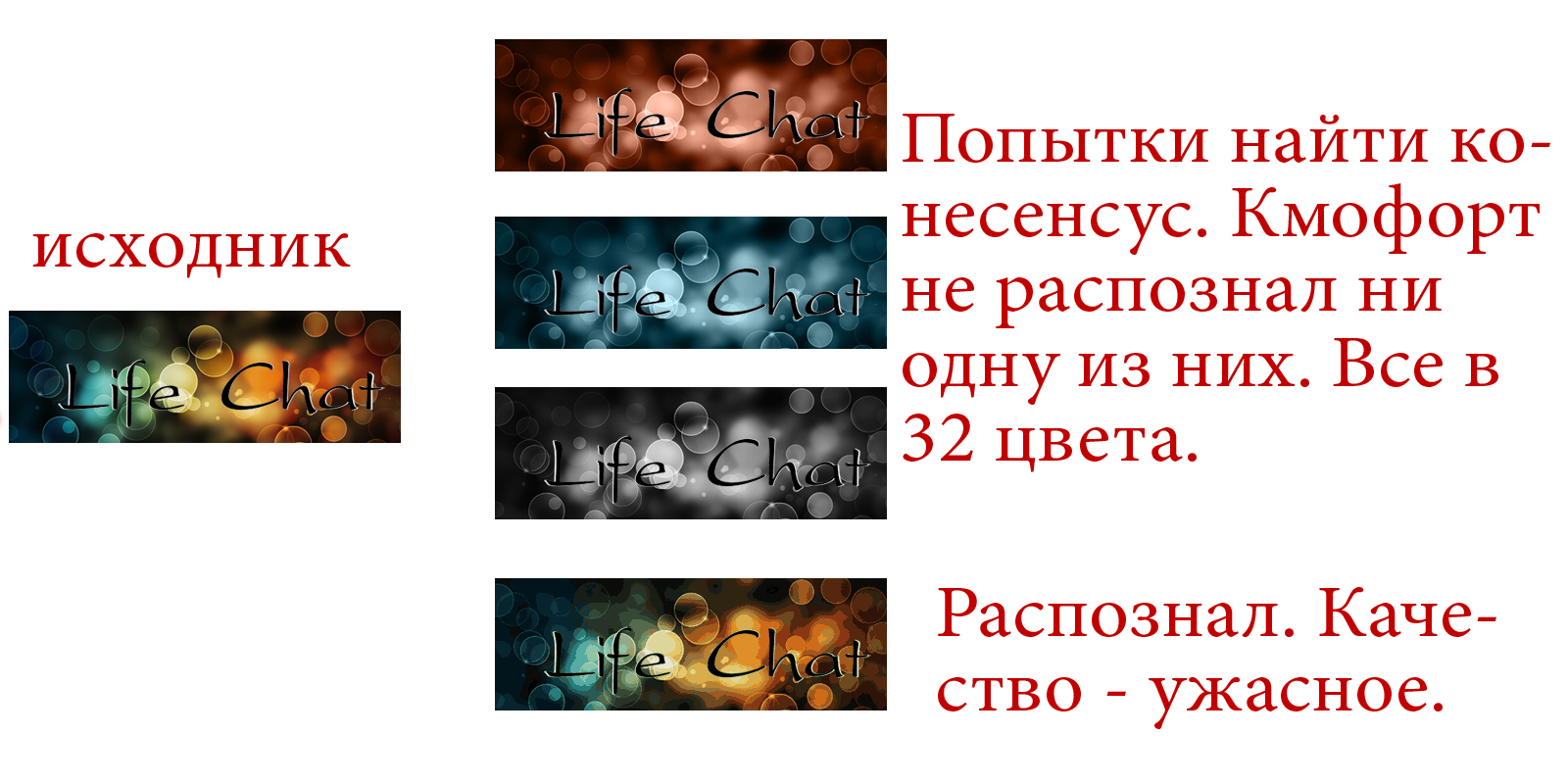 Получается лишь в формате GIF, да и то с условиями. Коммфорт не признает .gif с количеством цветом >32, а также не позволяет изспользование какого либа дизеринга. Что немало удручает ибо картинка в итоге получается достаточно лажовая, сколь не трудись ты в фотошопе. В градациях серого тоже нельзя.