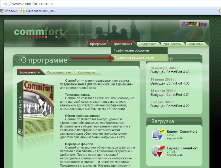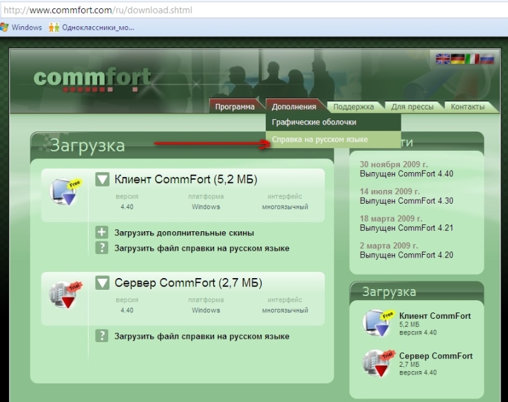 При нажатии на "Загрузить файл справки на русском языке" скачиваеться справка для клиента 4.30. Если я написал нетуда то извеняюсь
