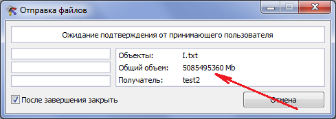Если на принимающей стороне согласиться на пересылку файла, то чат выдаст сообщение о нехватке места на диске.