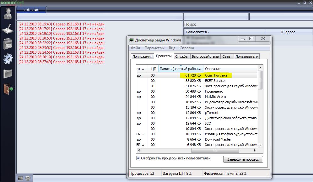 - Исправлена ошибка, проявляющаяся при наведении курсора мыши на логотип CommFort в дополнительном списке пользователей.