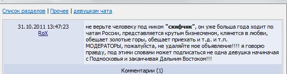 А рекламировали всеми нами "любимый" commfort-chat.sytes.net.Видимо если жалоба ихнему провайдеру была,то не подействовала.