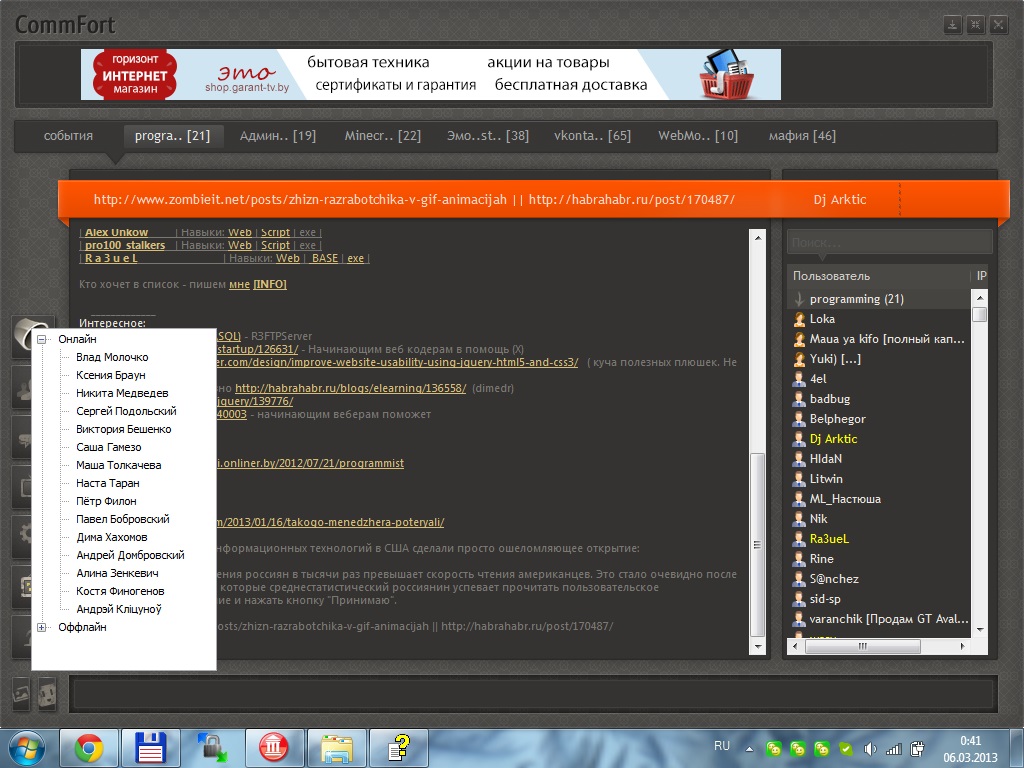 да вот наконецто зафиксировал де список онлайна выскакивает, если смещять комфорт на рабочем столе то список аонлайна тоже смещяется