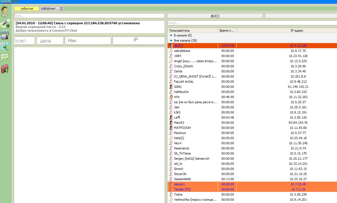 • Выход пользователей отображается серым цветом (3.01.2010)