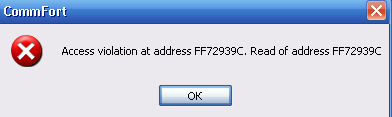 Access violation at address 00568B43 in module 'CommFort.exe'. Read of address 00000057