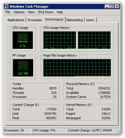 Конфигурация сервера: Windows 20008 R2 (64bit); Intel Pentium D 3.4 GHz; 2048 RAM; 1 Gb/s; средние число пользователей от 120 до 350