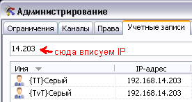 потом вводите IP в базе учетных записей (обновляем внизу если поле пустое):