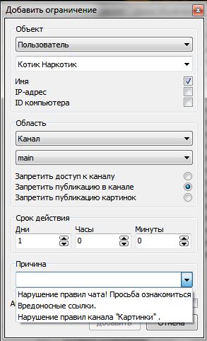 Chudik писал(а):Максим, скажите пожалуйста, как можно удалить в выпадающем меню причину ограничения?