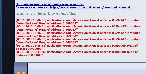 [03.11.2010 15:55:15] Application error: "Access violation at address 00000000. Read of address 00000000"