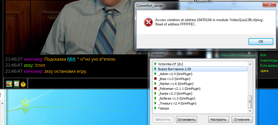 опят остановил викторин отключил плагин и включил и опять вылетела ошибка