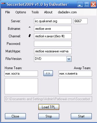 Я считаю, что такого бота самому сделать не возможно.Вот мой аргумент. При забитии гола, пинальти и т.д. бот должен уметь общаться с приложением (игрой). Он должен уметь передавать игре сообщения, например SendMessage и принимать их, для этого нужно знать как устроена игра. Я думаю, что исходники бота, который работает в IRC просто скачаны с какого то сайта и скомпилированы тем человеком, который их выложил. Первоначально их скорей всего сделал соавтор данной игры.
