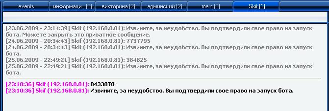 В том то и дело, что никакого сообщения не приходит. Я уже все перелопатил... Не могу понять в чем дело. На сервере отправка многоадресных сообщений разрешена, ник вписан правильно, но бот отказывается работать. :( Помоги, плиз, Skif. Уже 4 день без бота сижу :x