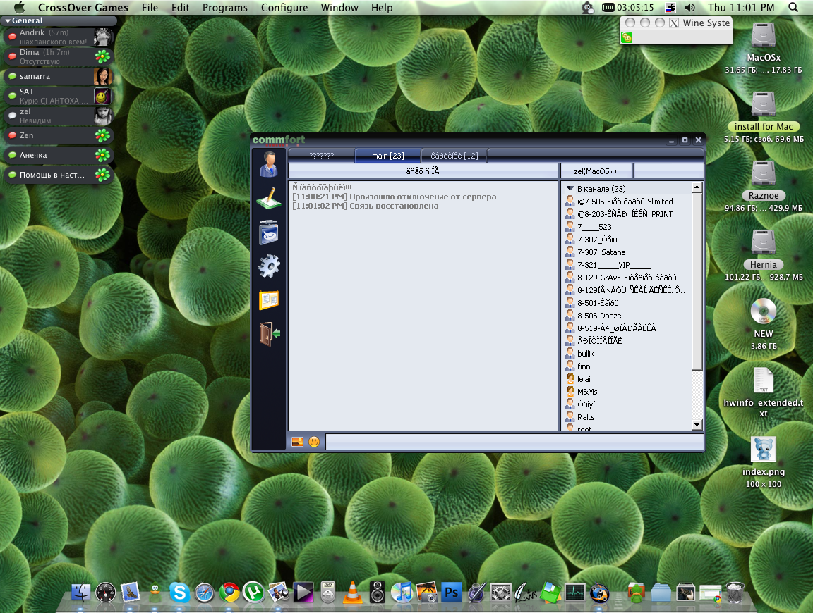 на линухе под вайном проблему со сворачивание я решал cedeg`ой. не знаю есть ли она под макос. или попробуйте еще какойто эмулятор для коммфорта. макос это ж тот же юникс, так что думаю цедегу запустите тоже.