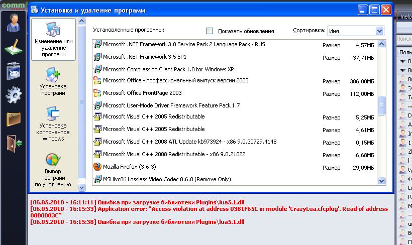 [05.05.2010 - 18:45:16] Ошибка при загрузке библиотеки Plugins\lua5.1.dll