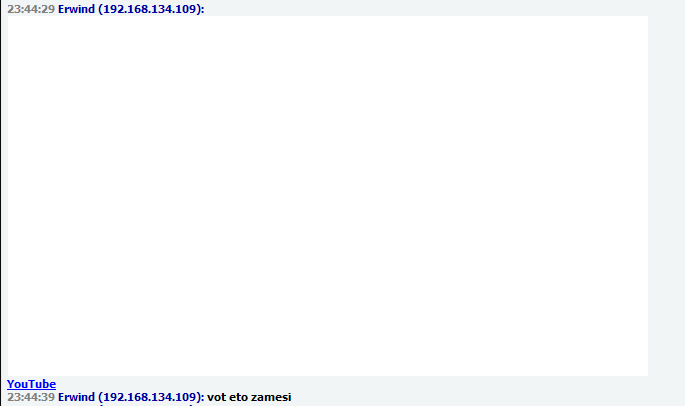 В общем заметил странное поведение ссылок (у меня как всегда на YouTube) если после публикации их в чат что то после них написано,к примеру так :" http://www.youtube.com/watch?v=_bDW-YQZVLw глянь клип ".Ссылки идут просто как ссылки,без видео.Иногда могут быть просто ссылками если даже и ничего после них и нет.Иногда в случае если после ссылки будет что то ещё написано ссылка..точнее то ...в общем не знаю как и сказать (4-й час ночи,почти сплю