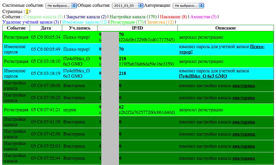Лёшь, с помощью этой "поделки" от Yaroslavа можно посмотреть наглядно кто, когда и какой канал создал или закрыл и не только это.