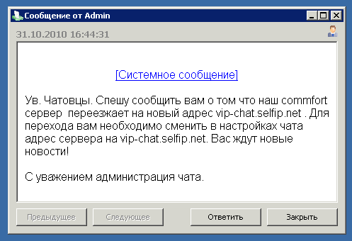 Уважаемый пользователь чата CommFort в связи с техническими неполадками мы мы переезжаем на новый сервер