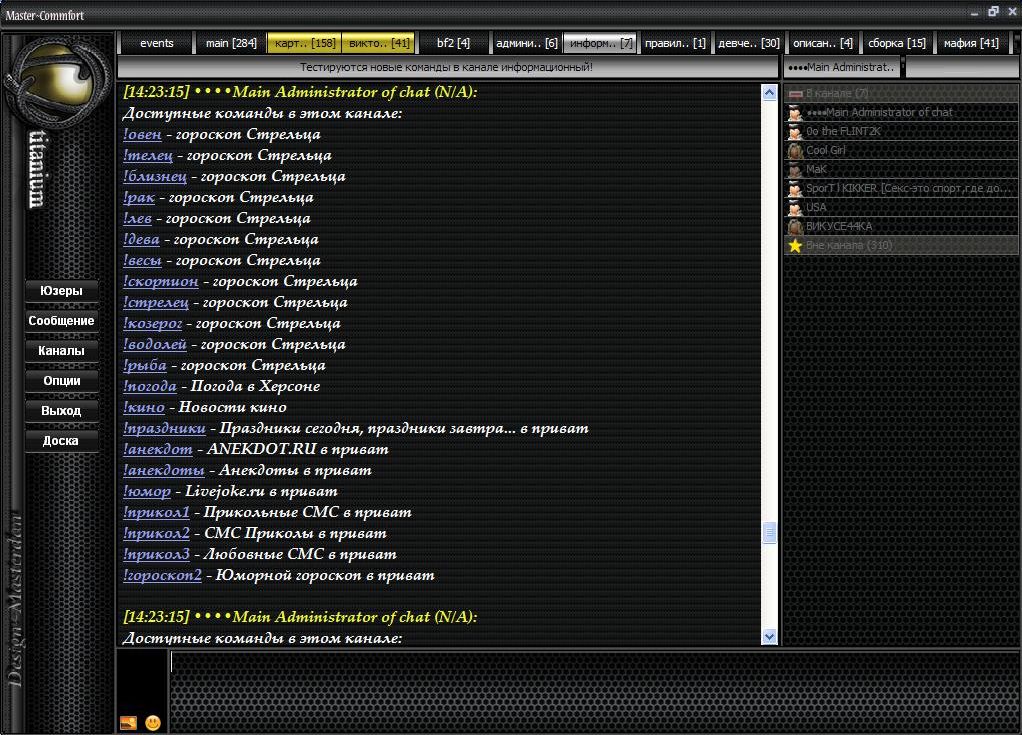 Web-статистика посещаемости чата —> http://commfort.com/ru/forum/viewtopic.php?t=6546