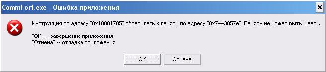 Без "адреса сбоя" помочь не могу.Romans225 писал(а): ошибка банальная виндовская, коммфорт.ехе обнаружена ошибка приложение будет закрыто, вот и все, жмем неотправляет и чат клиент убивается.
