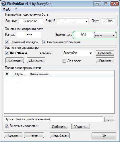 Да, такое окно выскакивает при первом запуске бота (в будущем это уберу), но далее можно зайти в настройки бота и указать папку с картинками и бот будет публиковать изображения.
