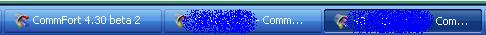 Был у меня открыт один CommFort. Запускаю ещё один (оба 4.30 beta 2). Он запрашивает имя, я нажимаю на ник. Снизу, естественно уже 2 чата. Появляется ещё что-то с надписью CommFort 4.30 beta 2. Я на него переключаюсь, входит в чат, который я вторым открыл. Но икнка второго чата работала вполне нормально. Принажатии на иконку с CommFort 4.30 beta 2, потом закрыть, и мне выбило, что программа не отвечает. Закрыть программу, и второй чат закрылся.