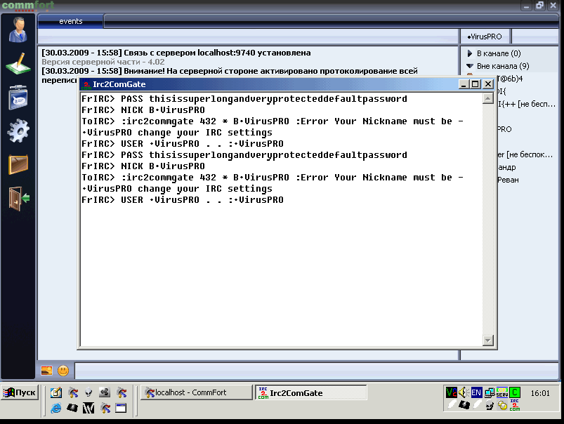 -добавленна возможность определения текущей учетной записи клиента CommFort и в случае несовпадения ников (клиента IRC и клиента CommFort) отключение с соответствующим сообщением.