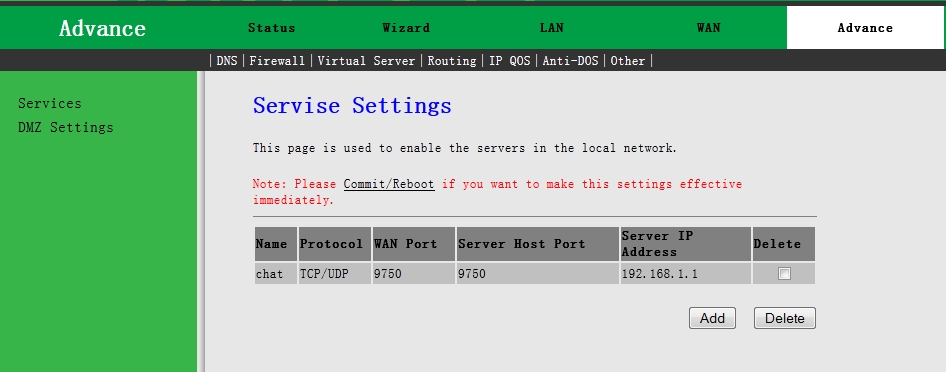 У тебя походу эта опция будет называться Advanced > Virtual Server